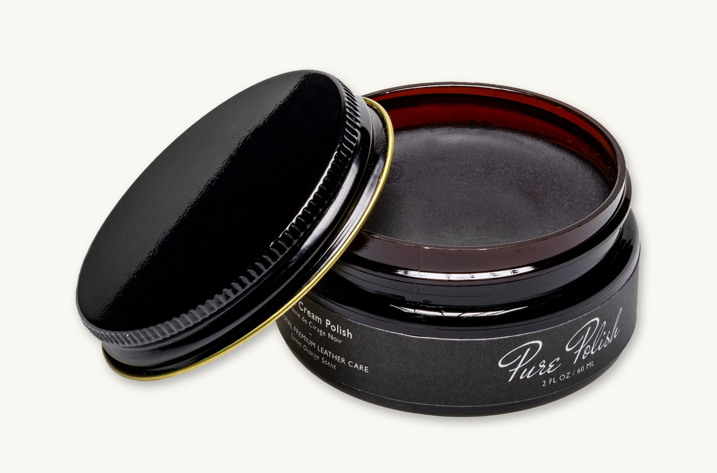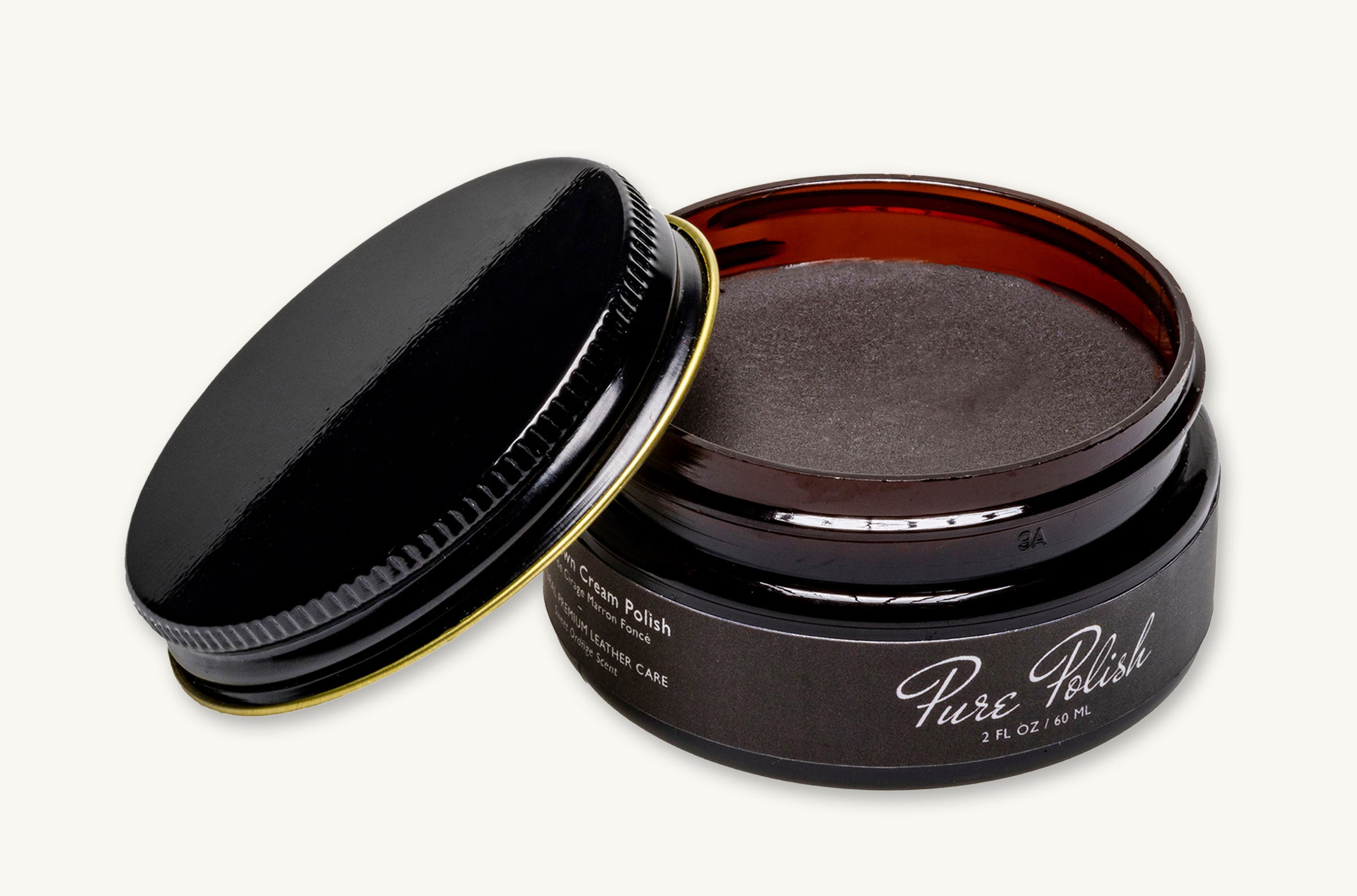 Single two-ounce (2oz) amber jar of Pure Polish Cream Polish. Use for protecting. conditioning. and shining all non-suede/non-patent leather goods. The Color Cream Polish is a pigmented/colored polish.